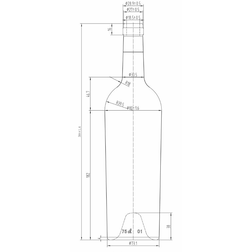 - تصميم زجاجة مخروطية كلاسيكية، مع تضييق تدريجي بمقدار 3.5 درجة من الأسفل إلى الكتف، مما يحسن استقرار التكديس والتخزين والتوازن الجمالي البصري