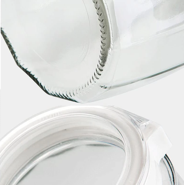 مرطبانات تخزين مطبخ زجاجية متعددة الأضلاع، عالية الجودة، مصممة لتخزين الطعام والعرض التجاري. مصنوعة من زجاج أبيض ناصع، وتلبي معايير إدارة الغذاء والدواء الأمريكية (FDA)، وحاصلة على شهادة نظام إدارة الجودة ISO 9001.